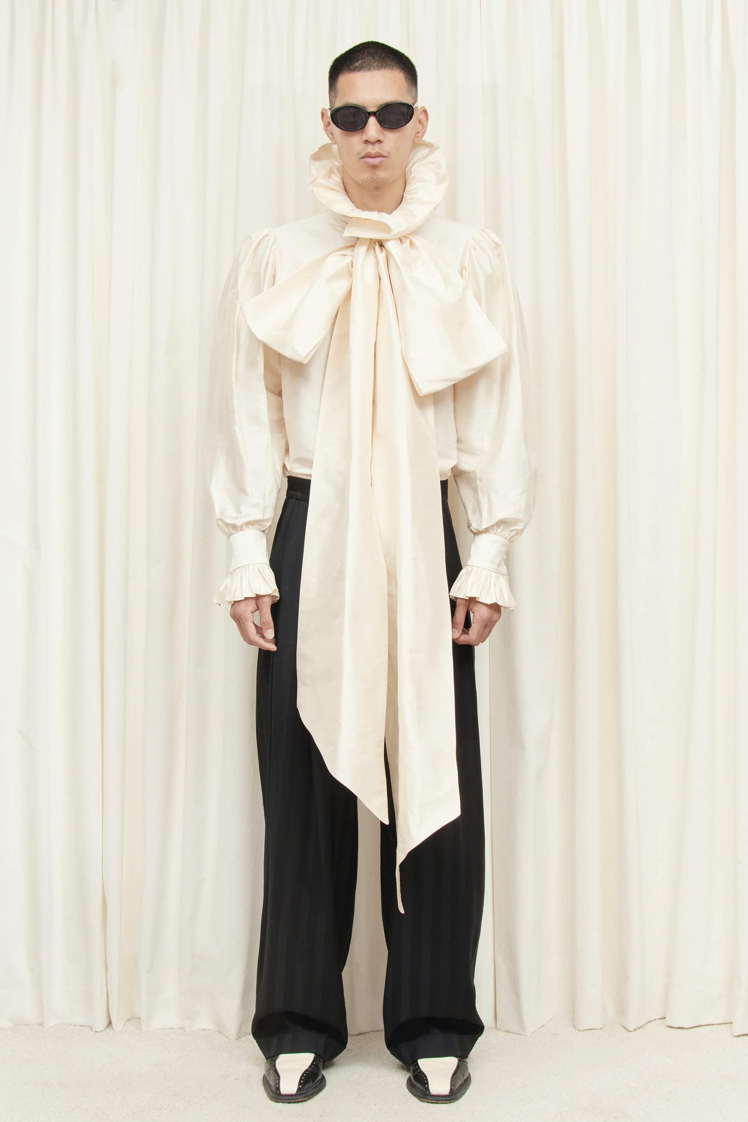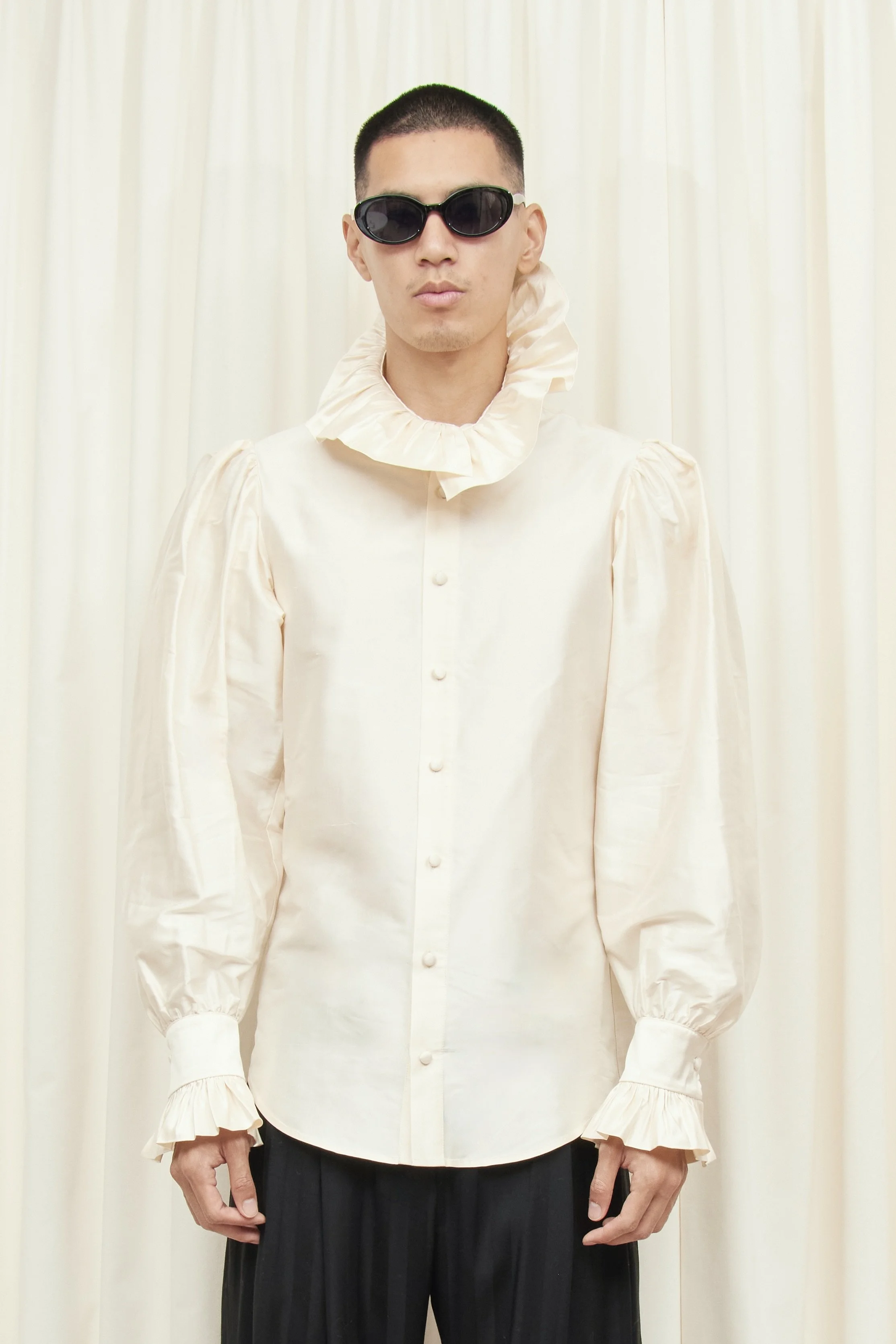 Ruffle at collar and cuffs